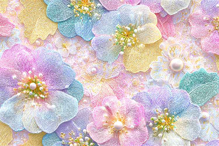 Pastel Embroidered Flowers Beaded Luxury Digital Texture