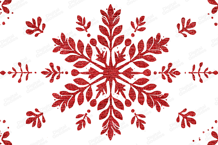 A rustic red floral snowflake pattern featuring a textured, handcrafted look with decorative leaves and folk-style elements. Perfect for holiday crafts, winter-themed projects, scrapbooking, greeting cards, fabric patterns, and creative decorative artwork. This high-resolution design adds a warm, festive, and artisanal charm to any project.