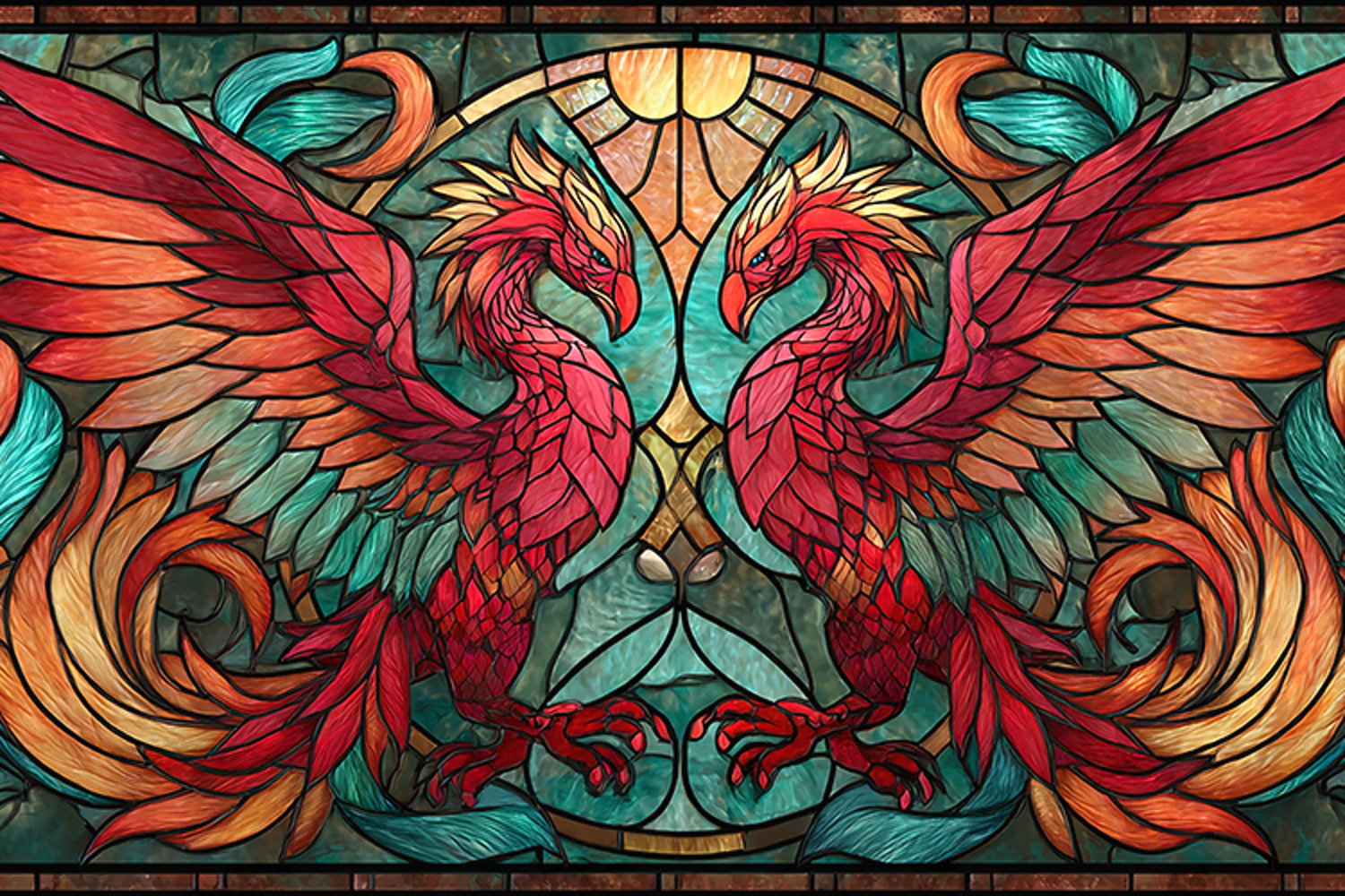 Stained Glass Phoenix Artwork with Vibrant Fantasy Design