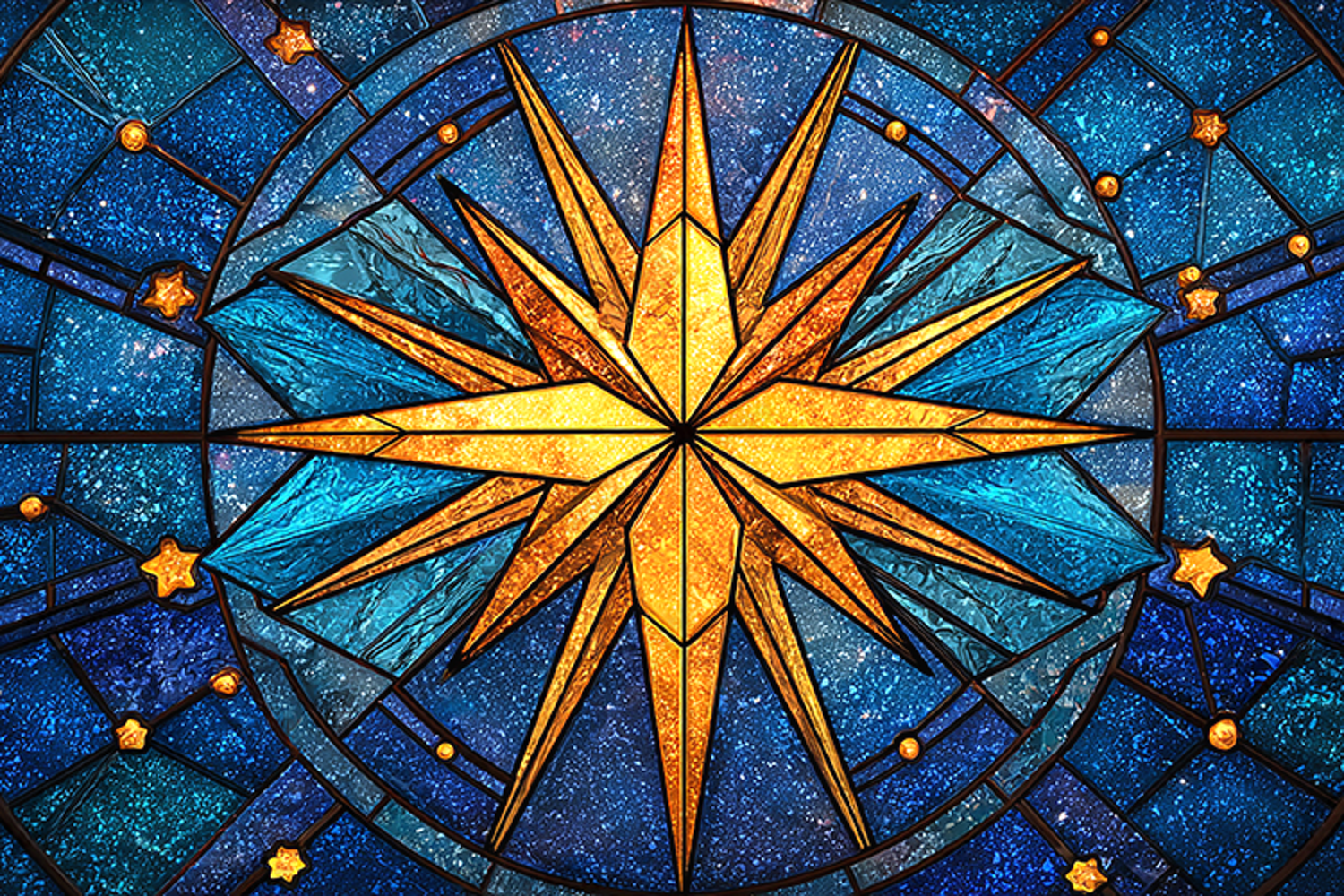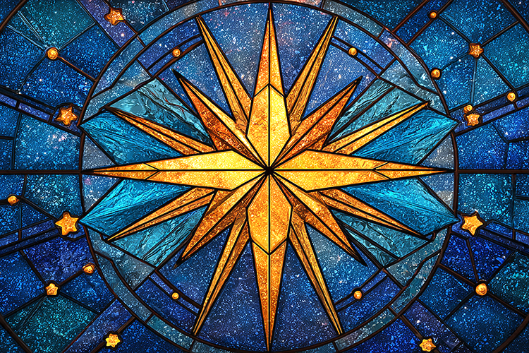 Stained Glass Compass Rose Cosmic Star Background