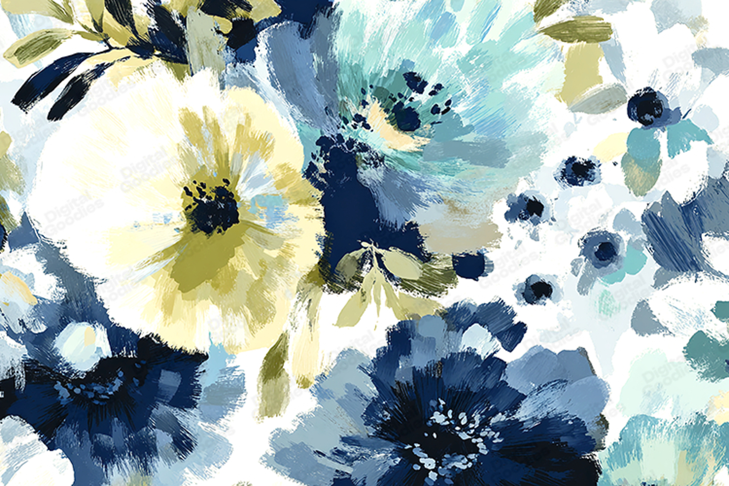 A beautifully painted floral background featuring elegant navy, teal, cream, and soft blue brush-stroke flowers. Perfect for invitations, scrapbooking, wall art, stationery, branding, card making, and digital design projects. This sophisticated floral texture adds a stylish and artistic touch to any creative work.