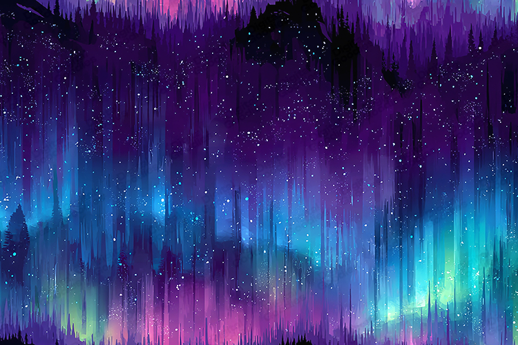 Aurora Night Sky Abstract Texture in Blue and Purple