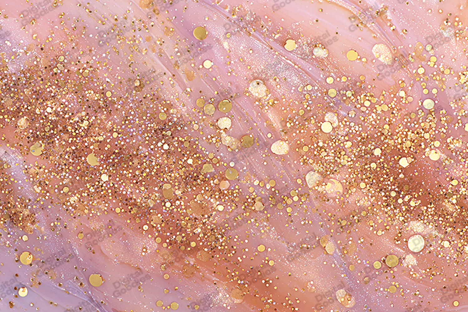 A luxurious rose-gold glitter splash background featuring sparkling gold flecks, soft pastel marble textures, and a shimmering elegant glow. Perfect for invitations, branding, packaging, greeting cards, digital scrapbooking, social media designs, and glamorous creative projects. Adds a sophisticated, feminine, and stylish touch to any design.