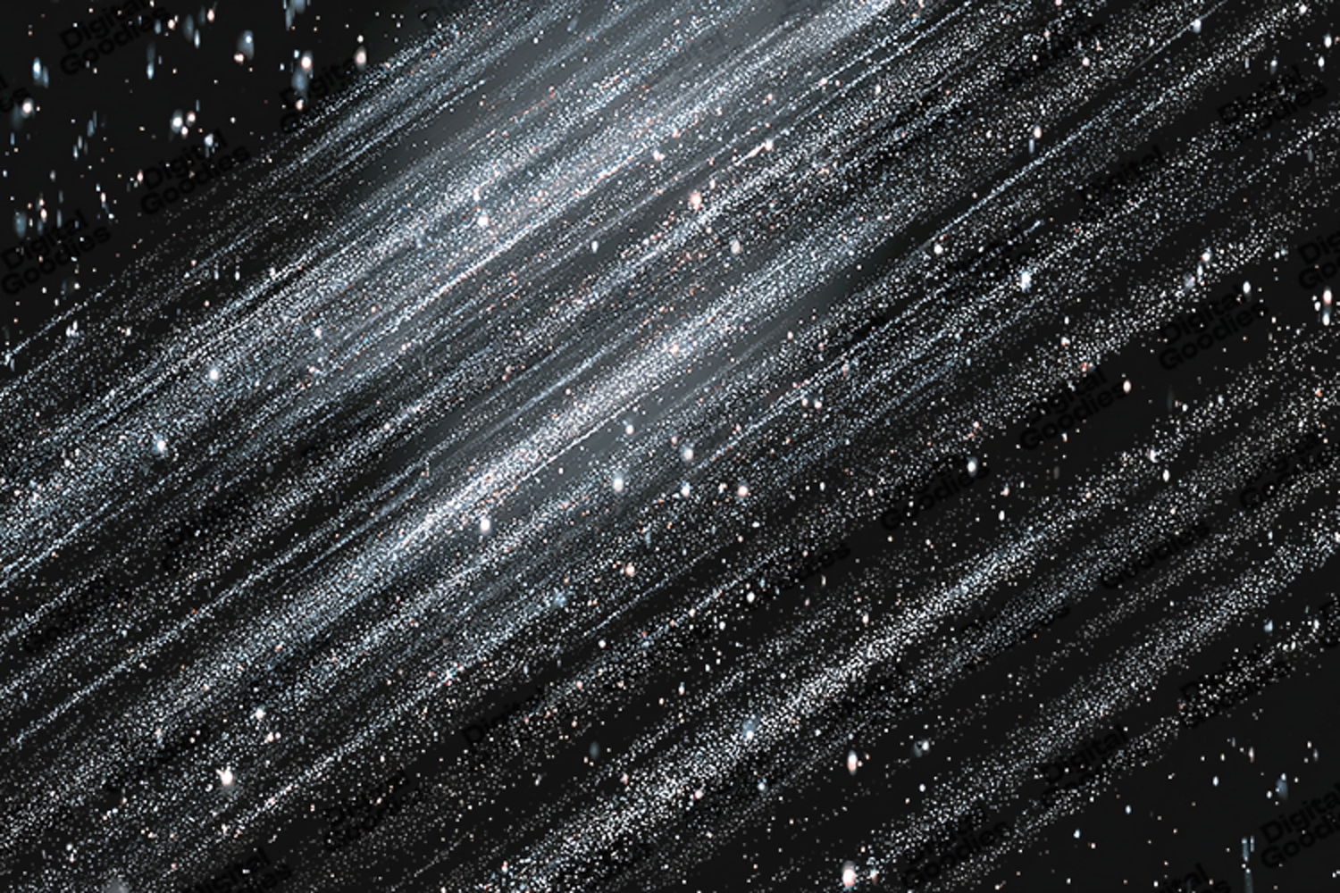 A dynamic and modern abstract background featuring thousands of sparkling, bright silver-white glitter particles that form dramatic diagonal lines and streaks. Set against a dark, moody background, the effect resembles heavy, shimmering rain or distant shooting stars. This high-resolution texture is perfect for sophisticated party invitations, modern branding, digital papers, event backdrops, and print-on-demand products. Use this texture to add a sense of motion, icy glamour, and brilliant, clean sparkle to any creative project.