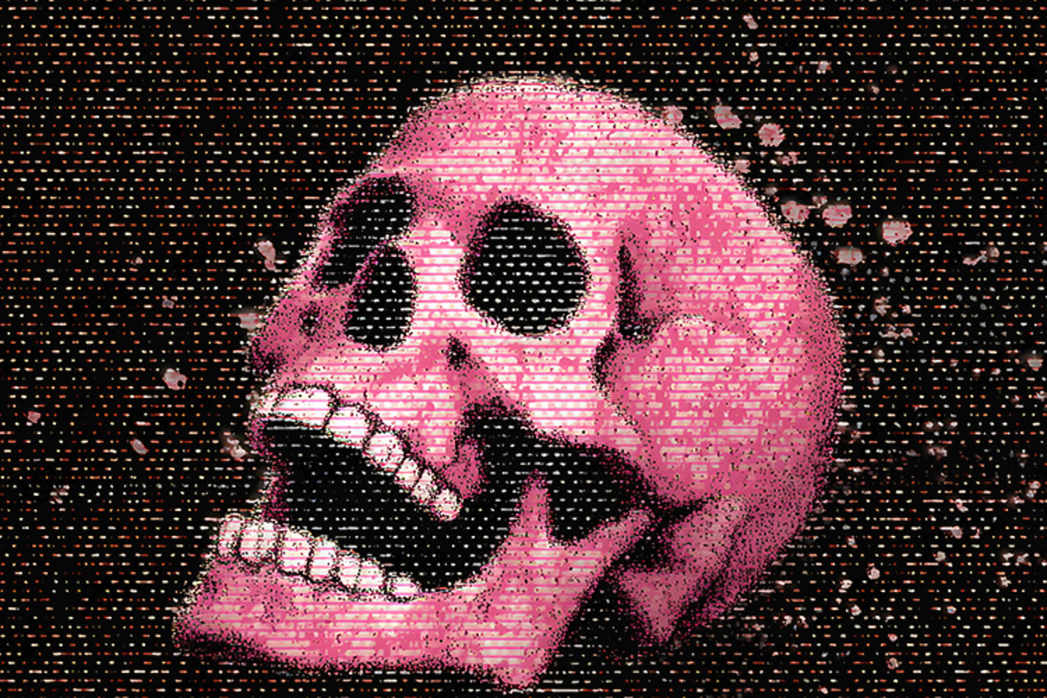 Pink Halftone Skull Art Retro Grunge Textured Design