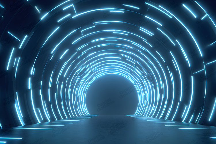 A futuristic neon tunnel glowing with bright blue lights and smooth curved lines, creating a sleek sci-fi atmosphere. Perfect for digital papers, tech-themed crafts, and modern design projects. Ideal for card making, scrapbooking, sublimation printing, and artwork that needs a high-tech, glowing, and visually striking futuristic background.