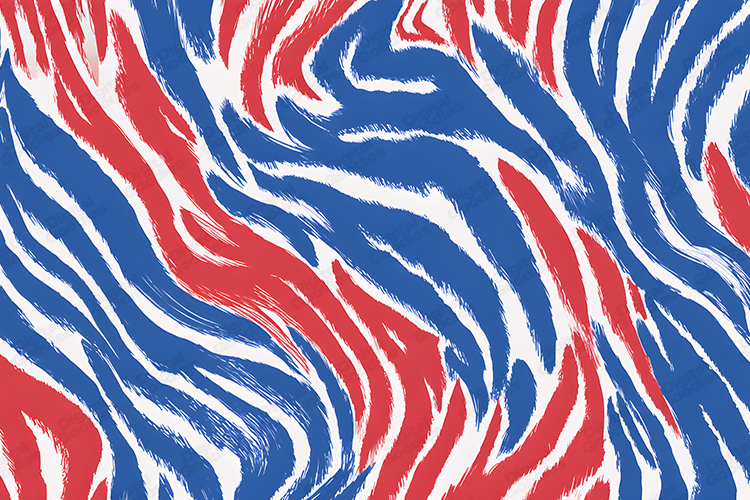 A bold red and blue zebra print abstract background featuring dynamic flowing stripes and a modern artistic look. Perfect for digital crafts, sublimation, scrapbooking, fashion design projects, home décor prints, sticker sheets, and creative branding. The high-resolution pattern provides a vibrant and eye-catching texture ideal for trendy and stylish artwork.