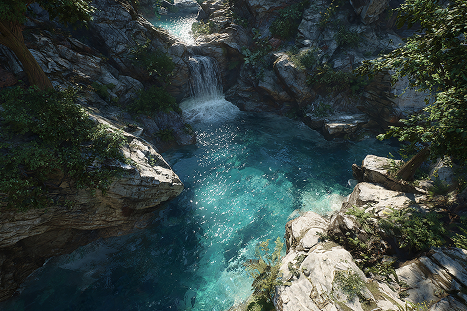 Organic Wilderness Paradise Turquoise Water Nature Scene Lush Green Clean Water Tropical Waterfall Rocky Landscape River Texture