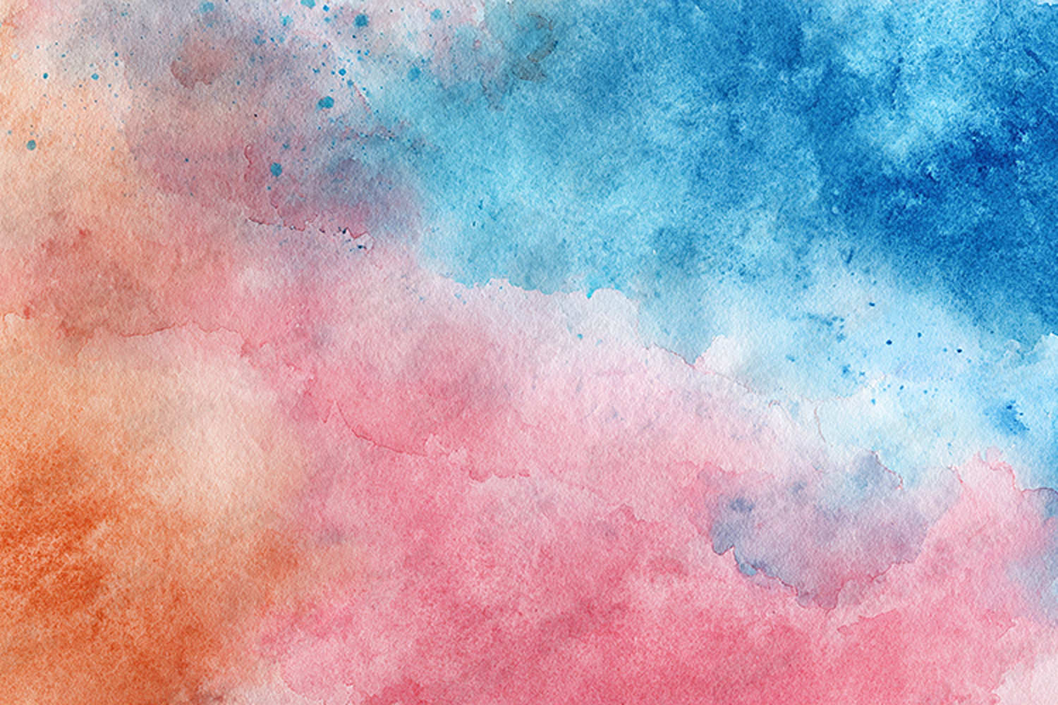A beautiful, high-resolution abstract watercolor texture featuring a rich, warm blend of colors, primarily soft pink/magenta, fiery orange, and coral red, contrasted by a cool splash of bright blue. The artistic background includes subtle paint splatters and organic blending, giving it a dynamic, fluid, and artistic feel. This versatile texture is perfect for high-energy, warm-toned, or creative design projects. Ideal for invitations, digital paper, vibrant branding, abstract wall art, and creative sublimation designs.