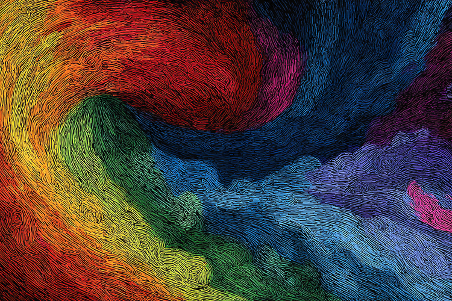 A bold abstract color swirl artwork featuring textured brush-like lines, rich rainbow tones, and dynamic flowing movement. The energetic mix of red, blue, yellow, and green creates a striking, artistic visual perfect for modern, creative, and expressive design projects.
