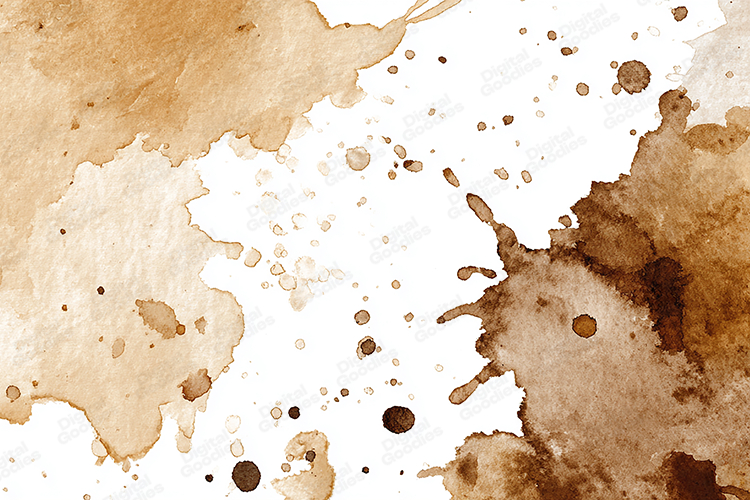 A dynamic brown watercolor splash background featuring expressive stains, scattered paint droplets, and natural artistic textures. Ideal for digital papers, journaling, invitations, branding, scrapbooking, packaging, and creative craft projects. This warm watercolor texture adds a rustic, vintage, and handmade feel to any design.