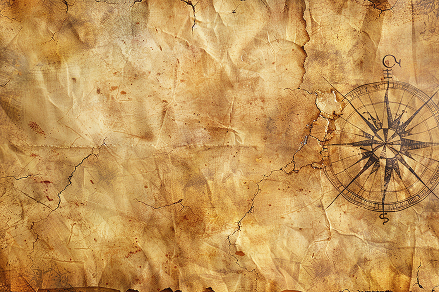 Authentic vintage parchment map background featuring aged paper textures, natural cracks, and an antique compass rose detail. This high-resolution historical design is perfect for digital papers, book covers, treasure maps, invitations, posters, educational projects, scrapbooking, and creative craft designs. The warm sepia tones, distressed paper surface, and classic cartography elements create a timeless, adventurous, and old-world aesthetic ideal for vintage and exploration-themed designs.