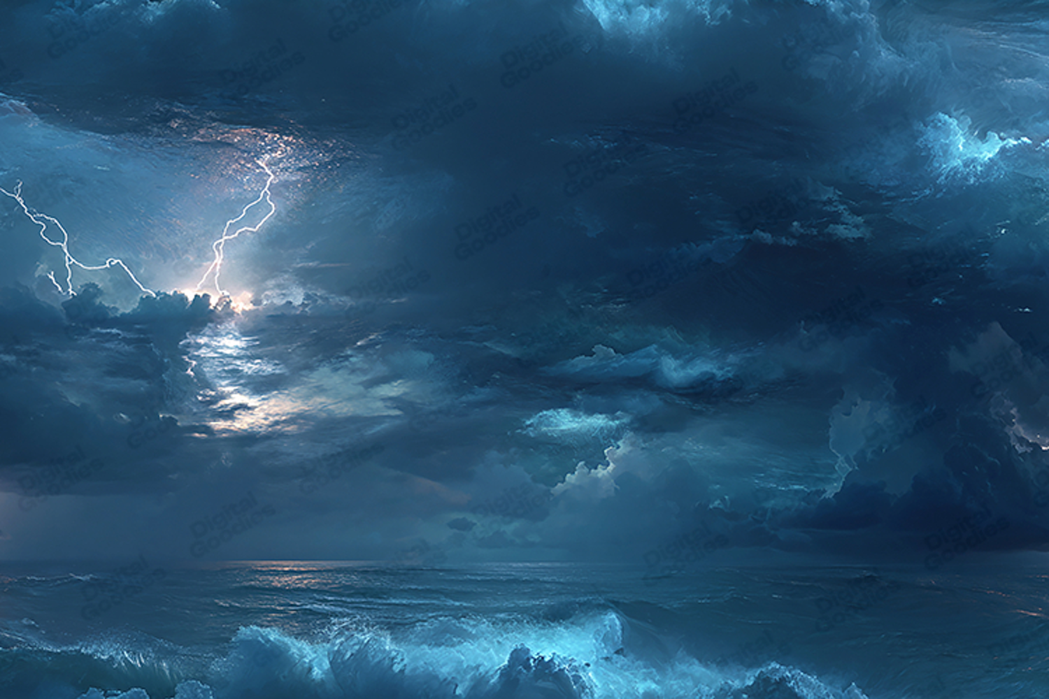 Oceanic Lightning Storm Night Landscape Background example image 1