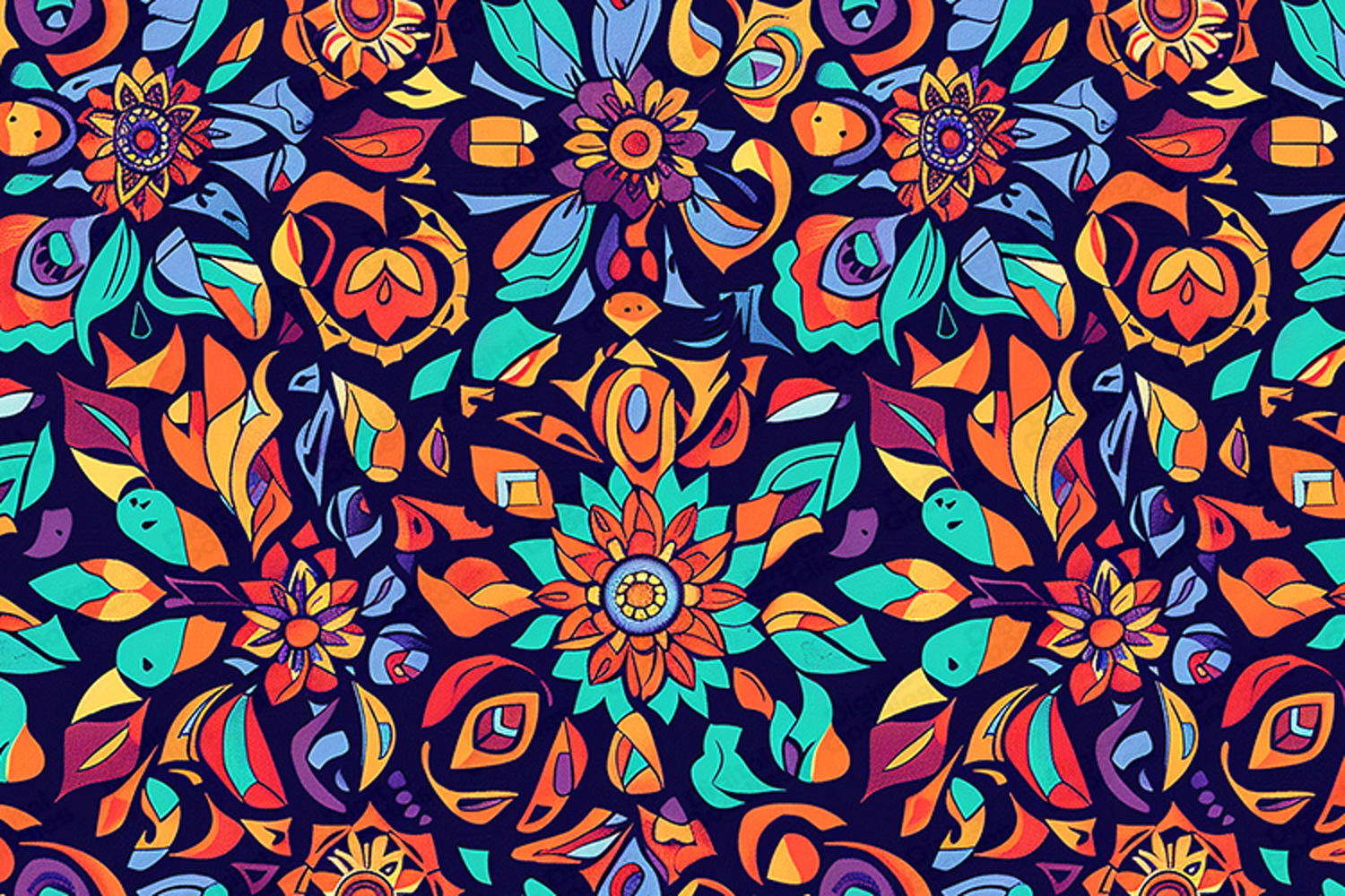 Vibrant Tribal Floral Psychedelic Pattern Background