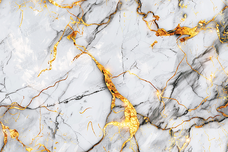 Infuse your creative projects with timeless sophistication using this high-resolution gold-veined white marble background. This design features a pristine white and light grey marble surface characterized by authentic, fine-grained textures and subtle natural variations. Striking, irregular veins of radiant metallic gold flow across the stone, creating a bold "Kintsugi" aesthetic that highlights beautiful, gilded fractures. Small, shimmering gold dust particles and brilliant light-catching flares add a layer of luxurious depth and realistic 3D shine to the composition. Perfect for premium branding, elegant wedding invitations, high-end social media graphics, and upscale sublimation projects, this multi-dimensional marble texture brings a refined, high-gloss elegance to any artistic design.