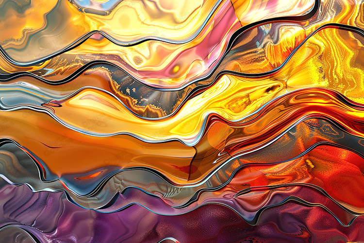 Infuse your creative projects with the high-octane energy of this high-resolution liquid chrome background. This composition features a dynamic series of flowing, horizontal waves in a breathtaking palette of molten amber, fiery orange, and deep violet-red. Each wave is defined by a sharp, high-gloss "liquid chrome" edge that catches the light with brilliant white and silver highlights. The artwork showcases intricate internal textures, ranging from smooth, mirror-like gradients to fine, stippled metallic grains that mimic the look of molten precious metals. The intense color saturation and flowing 3D movement create a futuristic, high-luxury aesthetic. Perfect for bold tech branding, energetic web banners, avant-garde social media graphics, and premium sublimation projects, this multi-dimensional fluid texture adds a professional, high-impact brilliance to any design.