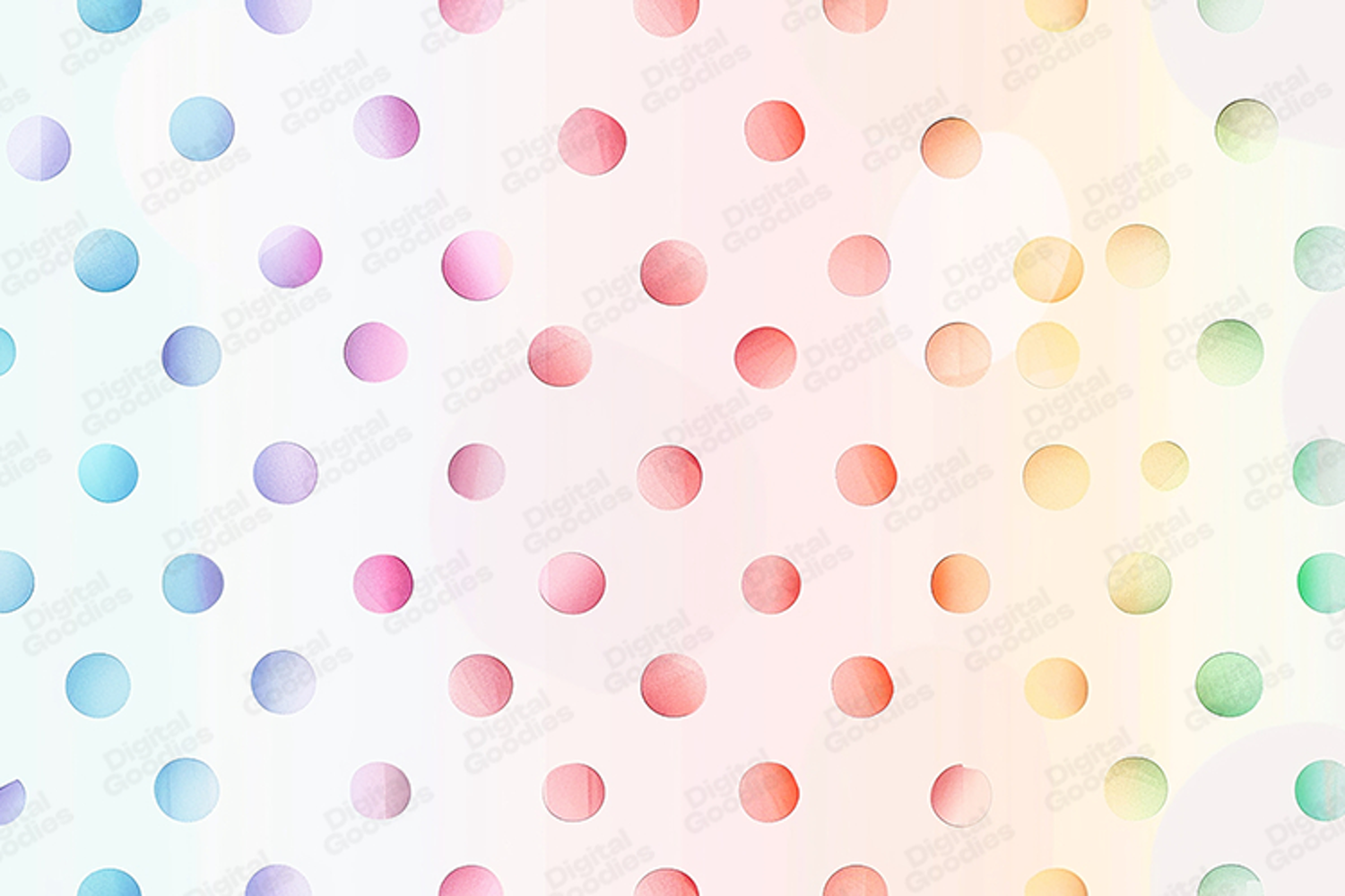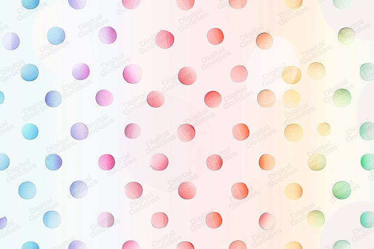 A charming pastel gradient polka dot background featuring soft transitions of blue, pink, peach, yellow, and green. The gentle shading on each dot adds depth and a modern, airy feel. Perfect for digital papers, scrapbooking, invitations, children’s designs, planners, stationery, sublimation, and creative craft projects. This colorful dotted pattern brings a sweet and playful touch to any design.