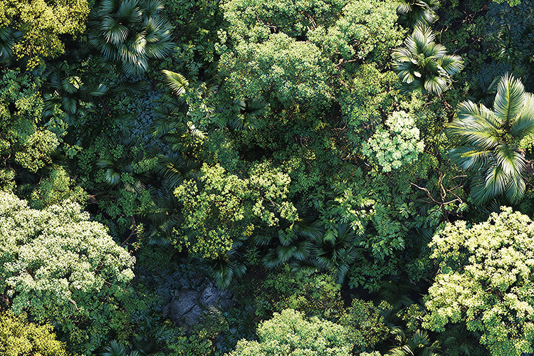 Tropical Rainforest Canopy Background with Lush Green Foliag