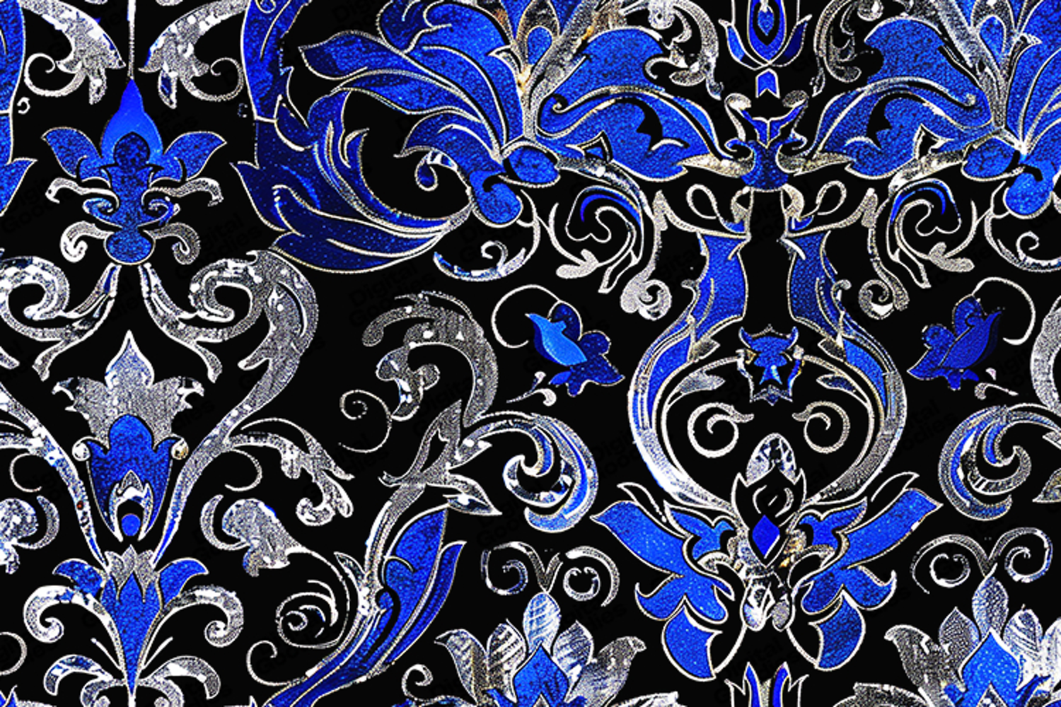 Black Blue Silver Damask Luxury Ornate Seamless Texture example image 1