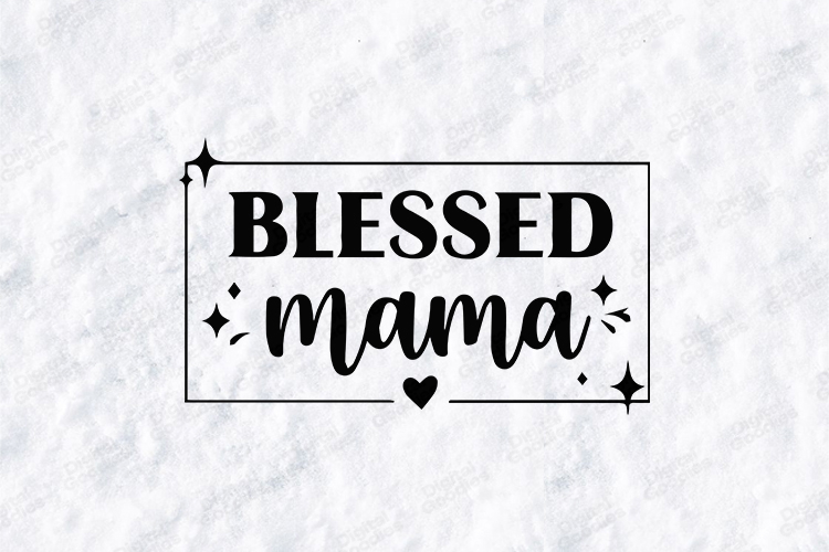 Celebrate the joy of motherhood with the "Blessed Mama" digital design. This elegant and modern typography piece features a bold, classic font for "BLESSED" paired with a graceful script for "mama," all centered within a minimalist rectangular frame. Accented with twinkling stars and a delicate heart, it is the perfect choice for creating personalized apparel, meaningful gifts, or matching shirts for your mama squad.