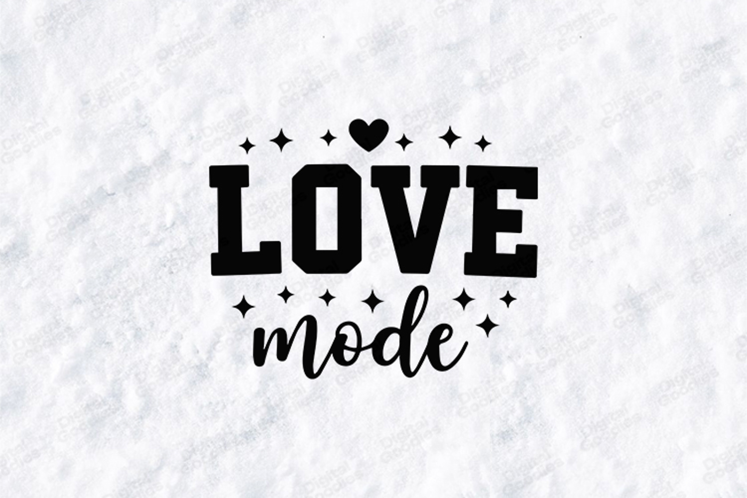 Celebrate the power of affection with this "Love Mode" digital design. This trendy artwork features bold, clean block typography for "LOVE" paired with an elegant, flowing script for "mode". Accented with a charming central heart and sparkling star elements, it is the perfect choice for creating professional-quality apparel, wedding decor, or romantic gifts for that special someone.