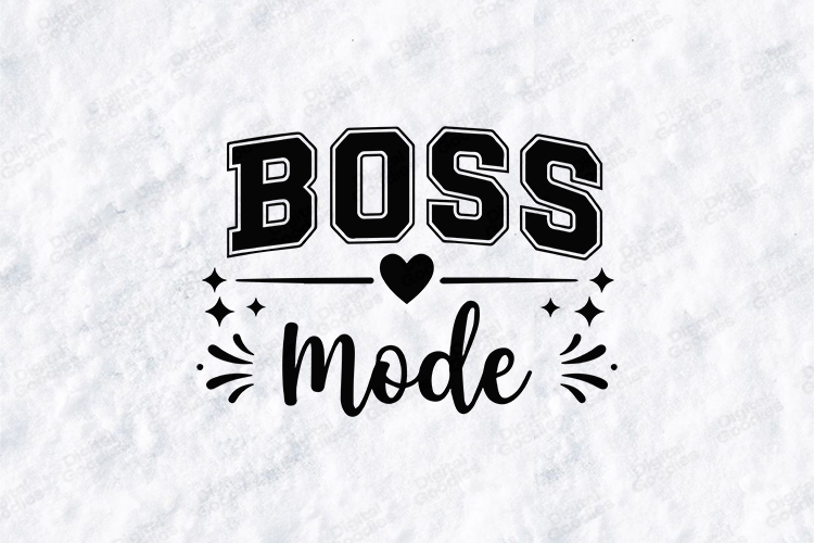 Own your day with this "Boss Mode" digital design. This trendy artwork features bold, varsity-style block typography for "BOSS" paired with an elegant, flowing script for "mode". Accented with a central heart, decorative sparkles, and professional flourishes, it is the perfect choice for creating high-quality apparel, office accessories, or motivational gifts for the ultimate leader.