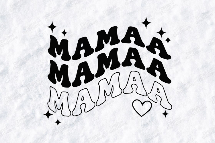 Celebrate the heart of the family with this trendy "Mama Mama Mama" design. Featuring a popular wavy retro aesthetic, this high-resolution graphic uses a stylish combination of bold black lettering and modern outlined typography. The illustration is playfully accented with twinkling stars and a charming heart motif, making it a perfect standout for any proud mother. It is the ideal choice for creating fashionable t-shirts, personalized tote bags, custom mugs, and heartwarming gifts for new or experienced mamas. Perfect for sublimation printing, vinyl cutting, and DIY craft projects, this groovy typographic design adds a fun and contemporary touch to any creative motherhood project.