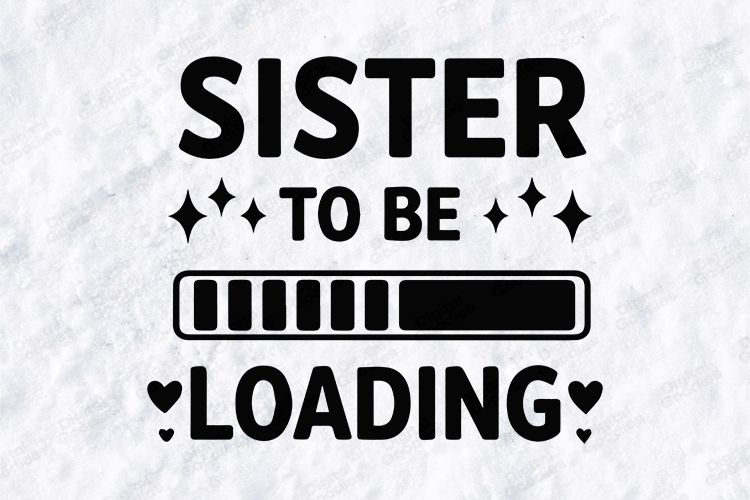 Share the exciting news of a new family member with this "Sister to Be Loading" design. Featuring a modern progress bar and bold typography, this high-resolution graphic is accented with playful hearts and twinkling stars, making it a perfect choice for creating big sister announcement shirts, personalized reveal gifts, and cute photo props. Ideal for sublimation printing, vinyl cutting, and DIY pregnancy announcement projects, this stylish and charming illustration adds a fun, creative touch to any sibling-themed celebration.