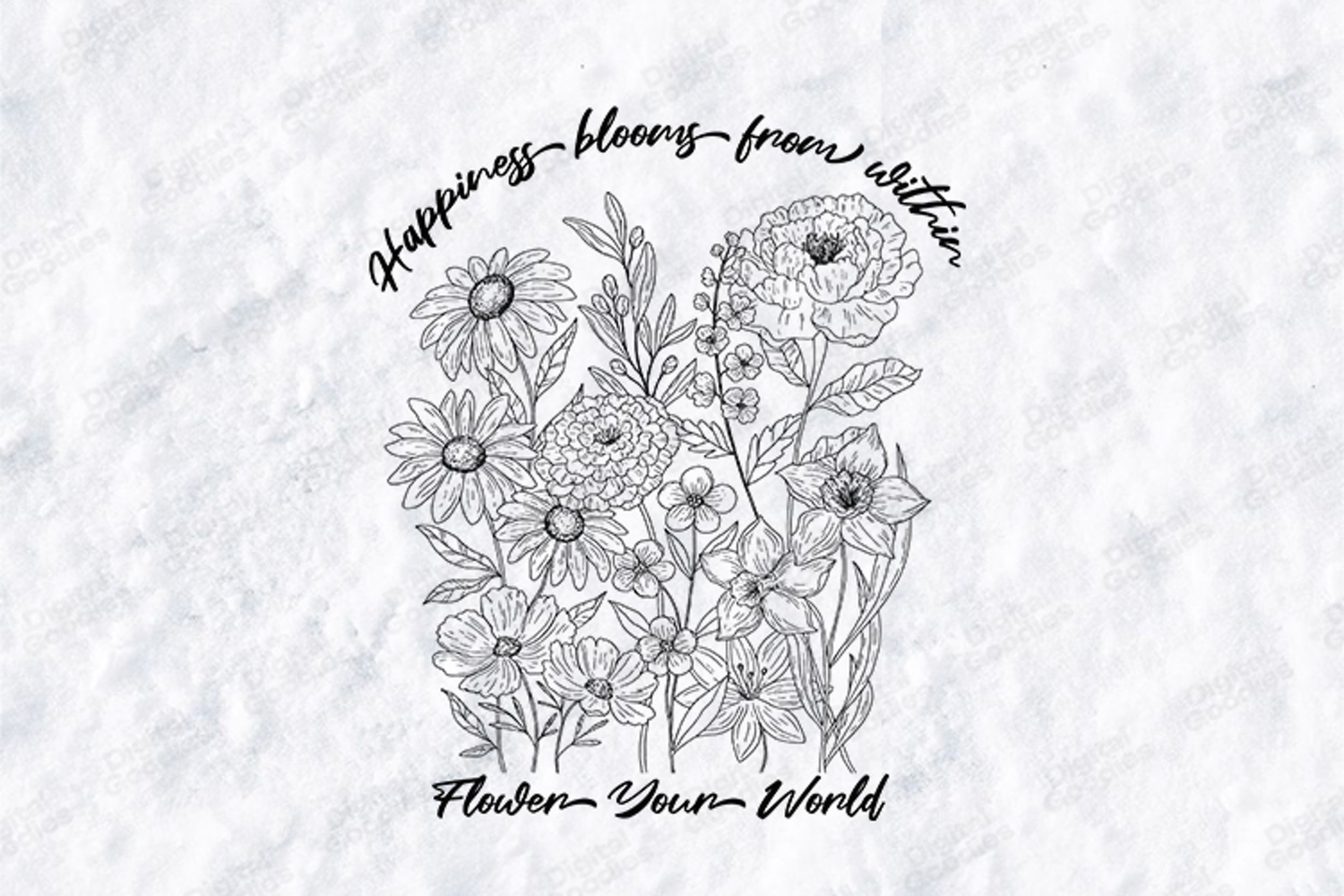 Happiness Blooms From Within Floral SVG Sublimation Design example image 1