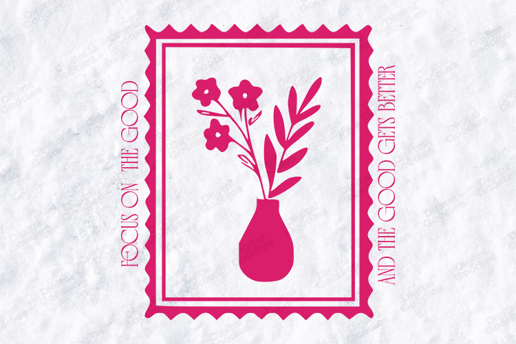 Focus On The Good Vase Floral Stamp SVG Sublimation Design
