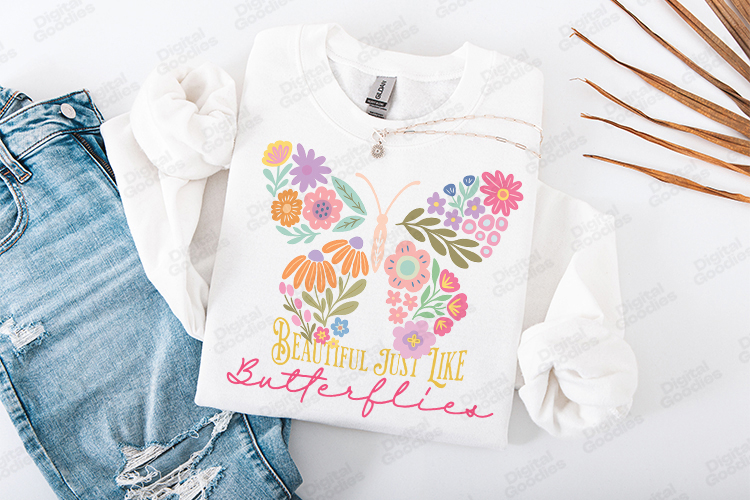 Beautiful Just Like Butterflies Floral SVG Sublimation PNG