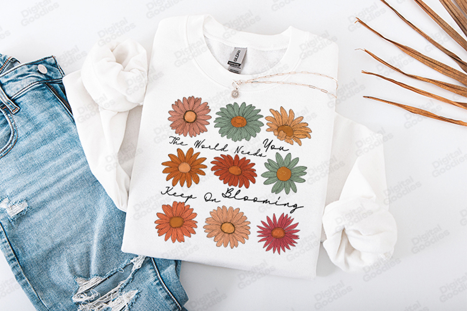 Similar Design Products to The World Needs You Keep On Blooming Floral Retro SVG PNG