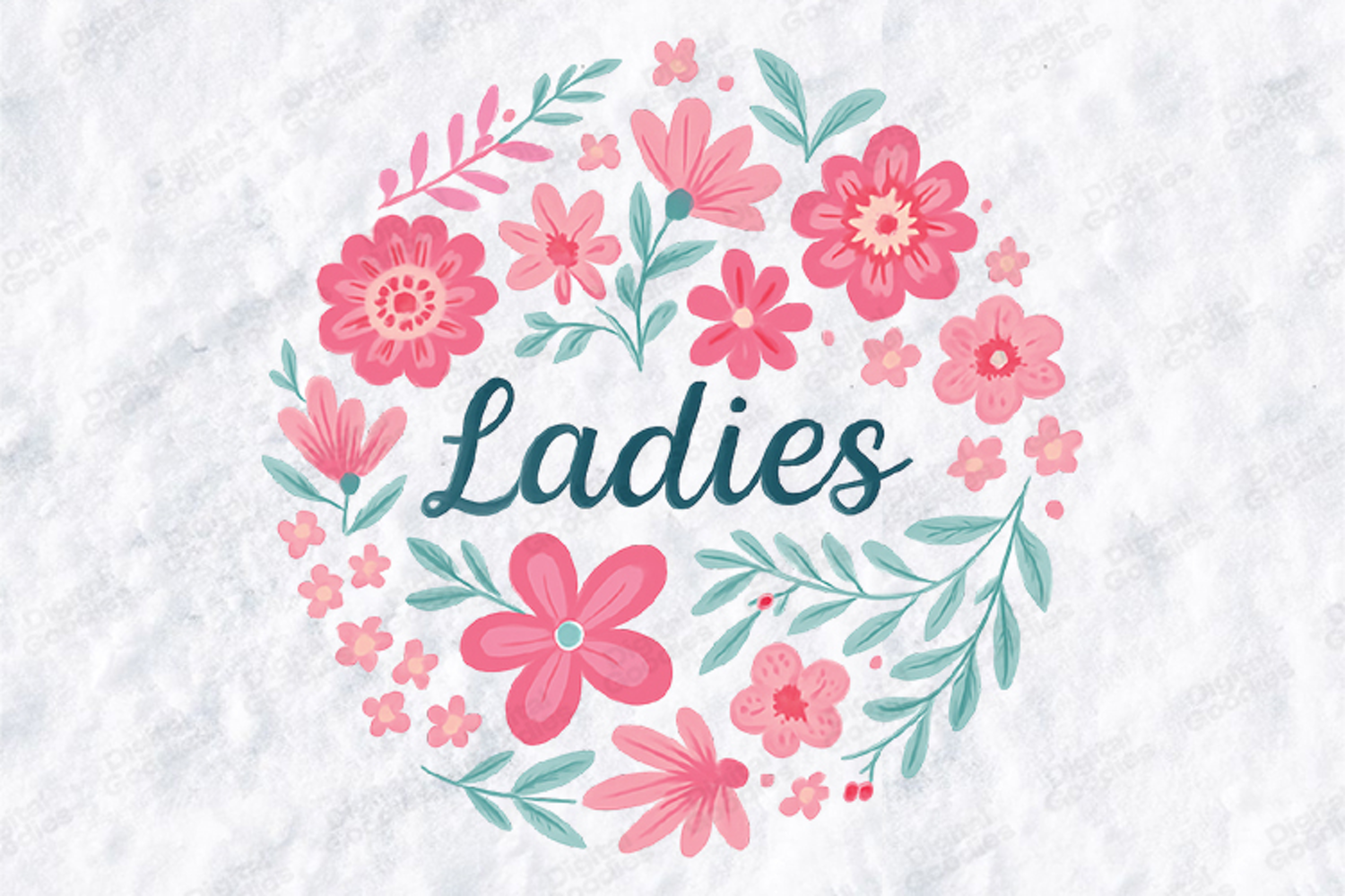 Celebrate the women in your life with this beautiful "Ladies" digital design. Featuring a lush, circular wreath of hand-drawn wildflowers in a stunning palette of rose pink, coral, and soft teal, this high-resolution JPG is perfect for creating vibrant, coordinated gifts. It is an ideal choice for sublimation on t-shirts for retreats or gatherings, tote bags for brunch, and personalized journals. This dainty botanical aesthetic combines a modern "coquette" vibe with a timeless floral arrangement, making it a versatile addition to your creative library.
