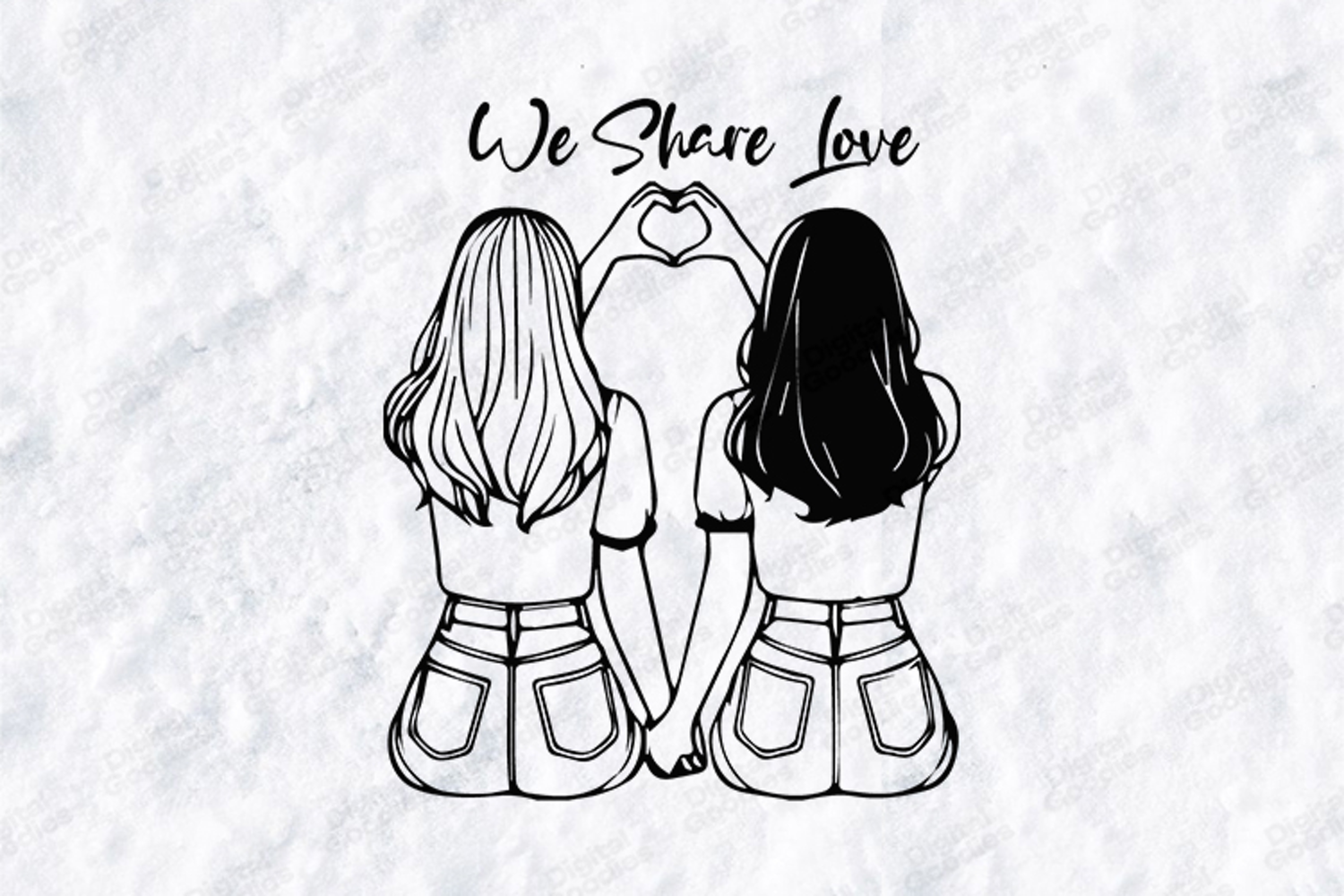 We Share Love SVG Best Friends PNG Gift Line Art Sisterhood