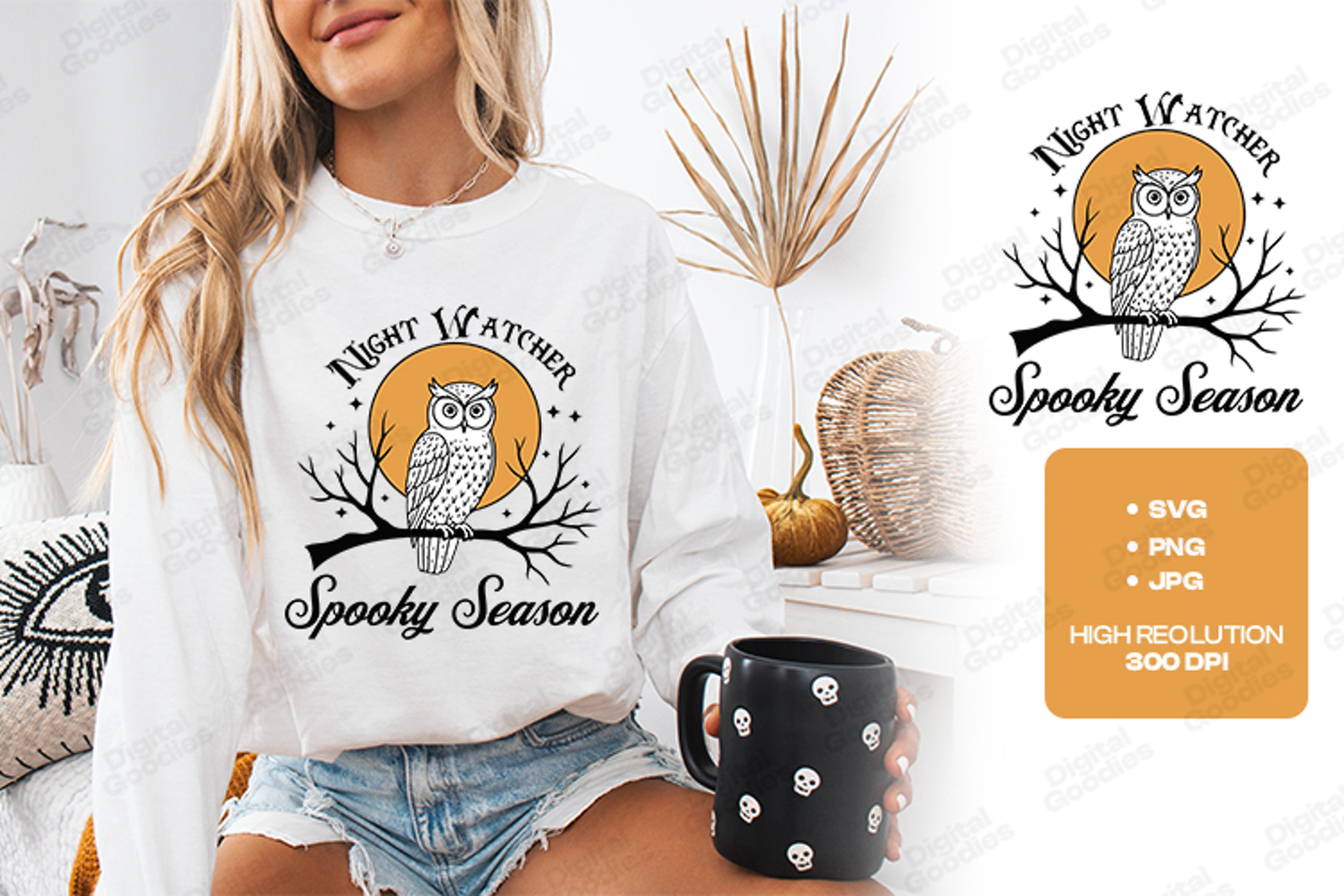 Spooky Season Owl SVG Night Watcher Halloween Sublimation example image 1