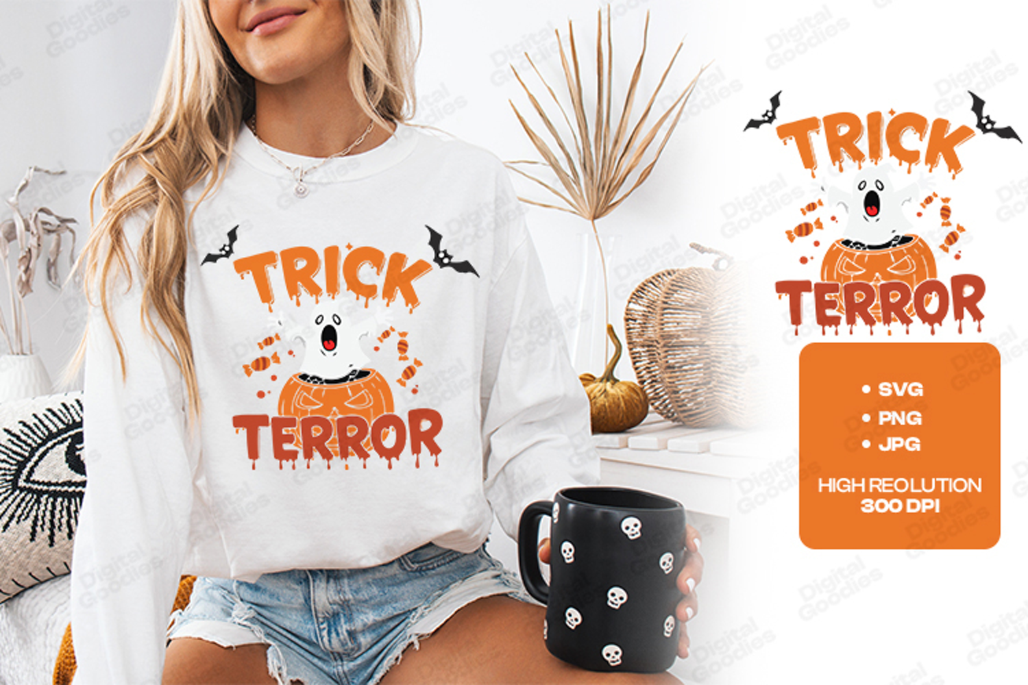 Trick Terror SVG - Halloween Ghost Pumpkin Candy Cut File example image 1