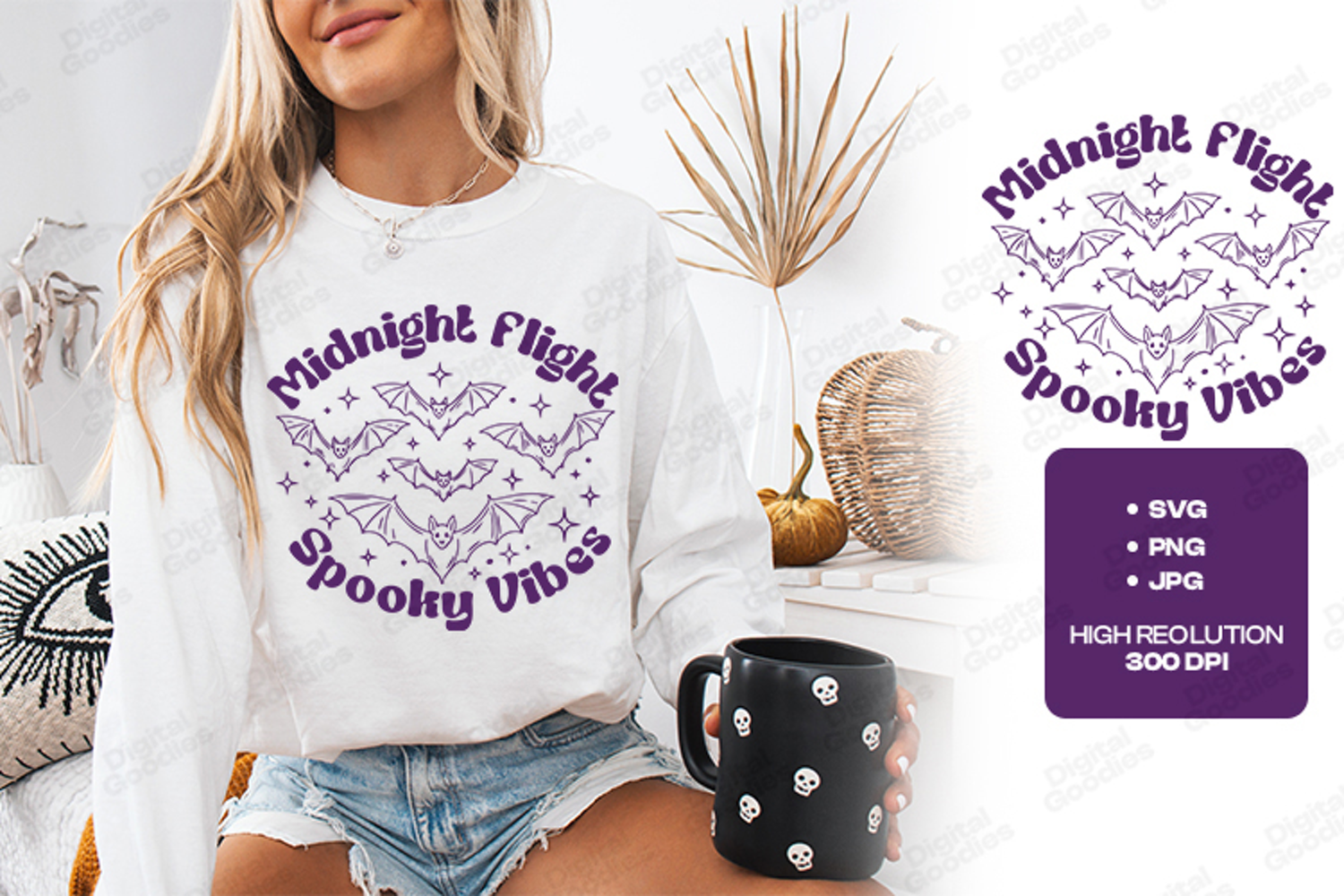 Similar Design Products to Midnight Flight SVG - Spooky Vibes Halloween Bats Cut File
