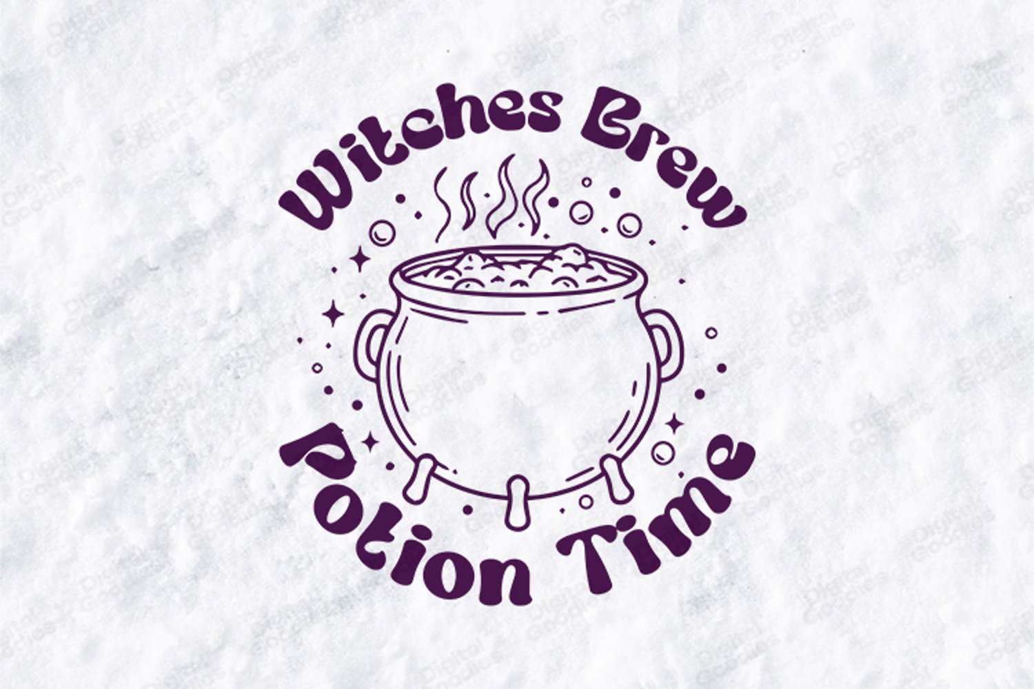 Stir up some holiday magic with the charming "Witches Brew Potion Time" bubbling cauldron design. This high-quality digital illustration features a detailed purple line-art cauldron overflowing with a magical concoction, complete with rising steam and frothing bubbles. Perfect for creating professional holiday t-shirts, personalized kitchen towels, and atmospheric seasonal home decor with the included high-resolution SVG, PNG, and JPG files.