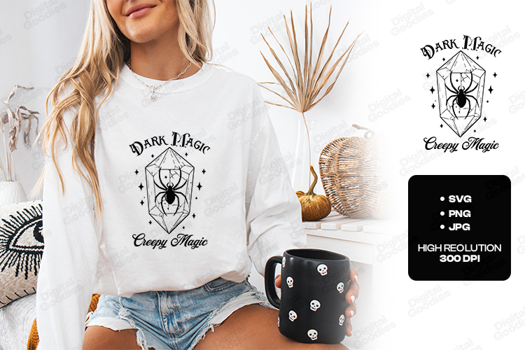 Dark Magic SVG - Creepy Magic Spider Crystal Halloween File