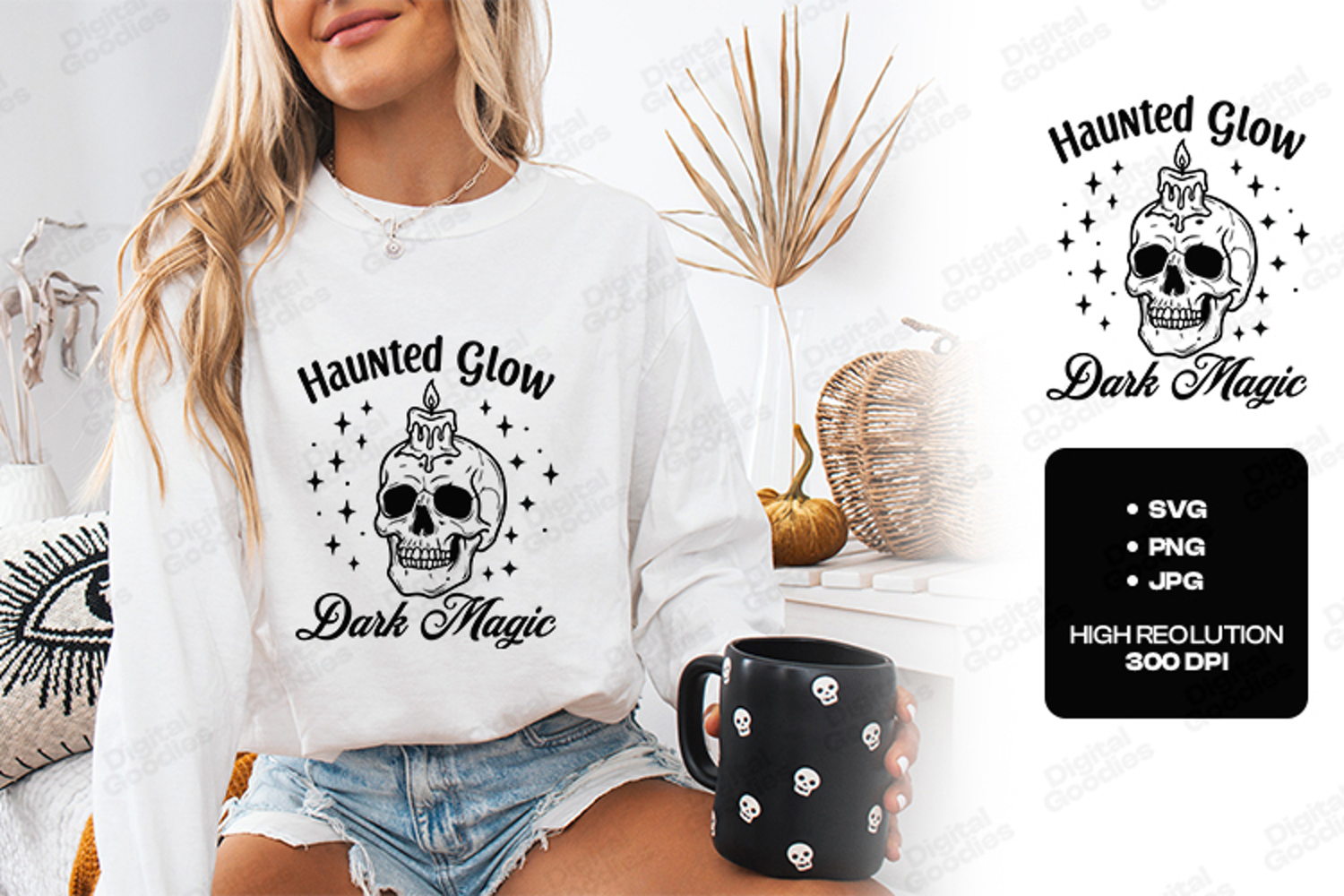 Haunted Glow SVG - Dark Magic Skull Candle Halloween File