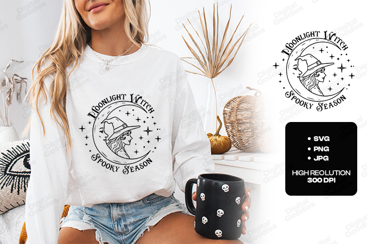 Svg Witch Svg Crescent Moon Hallows Eve Mystical Svg Witchy Vibes Halloween Moon Spooky Season Celestial Witch Moonlight Witch