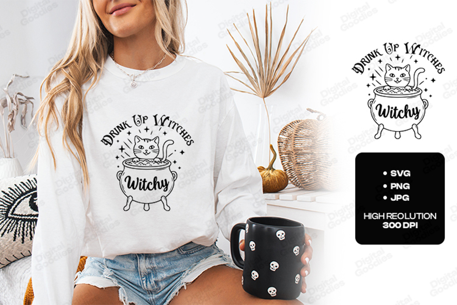 Drink Up Witches Cat SVG - Halloween Witchy Cauldron File example image 1