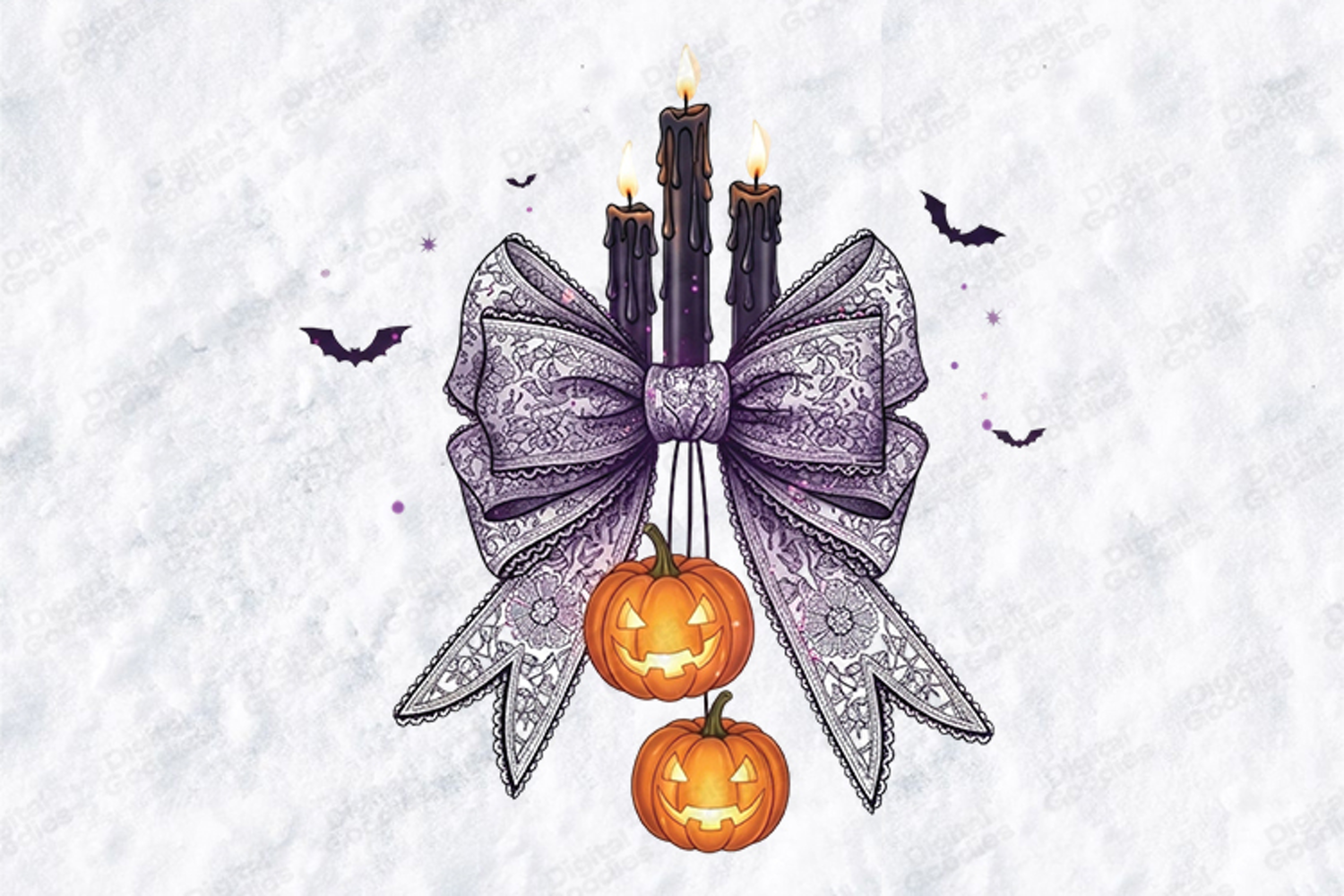 Gothic Lace Bow SVG - Halloween Pumpkin & Candle Sublimation
