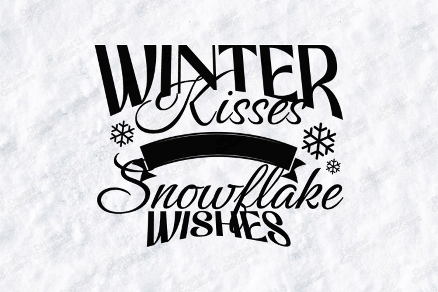 Spread festive cheer with the charming "Winter Kisses Snowflake Wishes" typography design. This high-quality digital illustration features a sophisticated mix of bold serif fonts, elegant scripts, and a decorative banner. Accented with delicate snowflakes, this clean and modern design is perfect for creating professional holiday apparel, seasonal home decor, and festive greeting cards with the included high-resolution files.