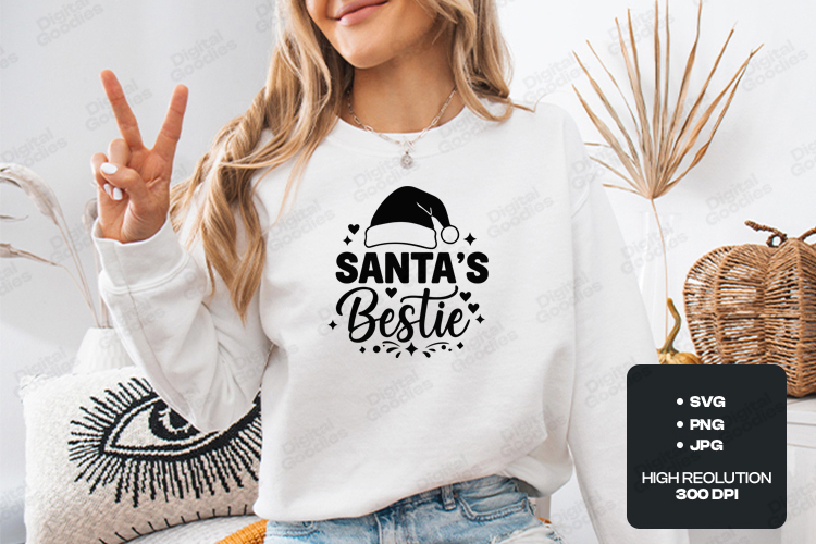 Santa's Bestie SVG, Christmas Hat PNG Art