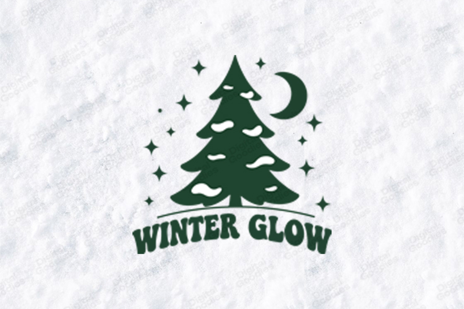 Embrace the magic of the season with this "Winter Glow" digital design. Featuring a beautifully stylized evergreen tree adorned with snow, surrounded by a crescent moon and twinkling stars, this retro-inspired graphic captures the serene beauty of a winter night.