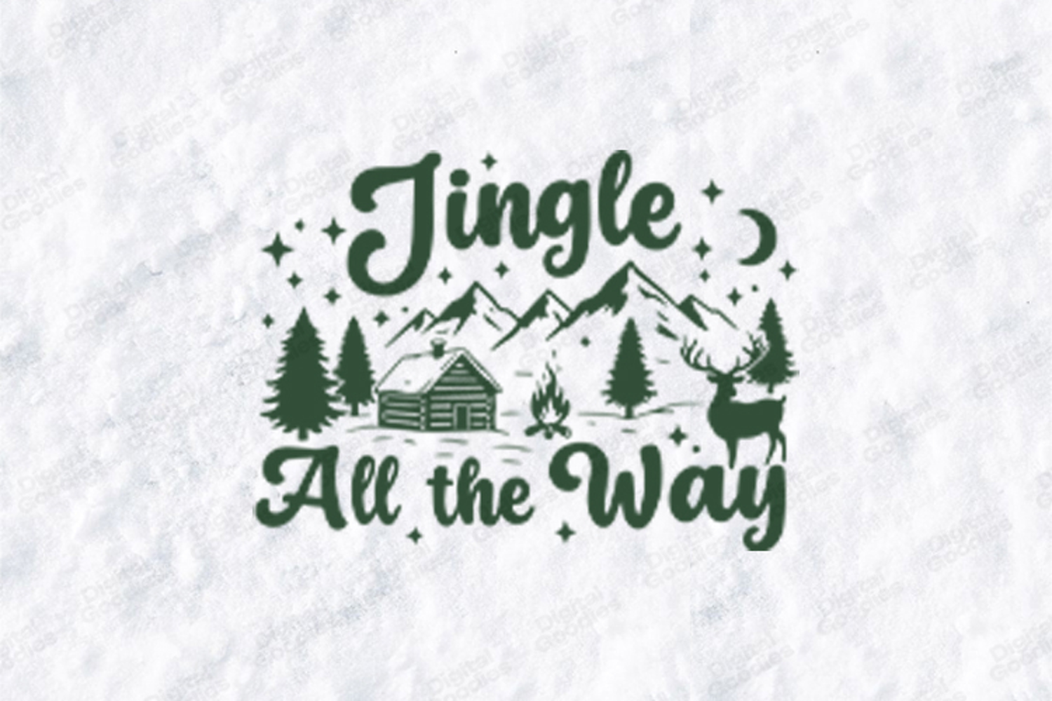 Jingle All The Way Christmas Mountain Cabin Deer SVG Cut File