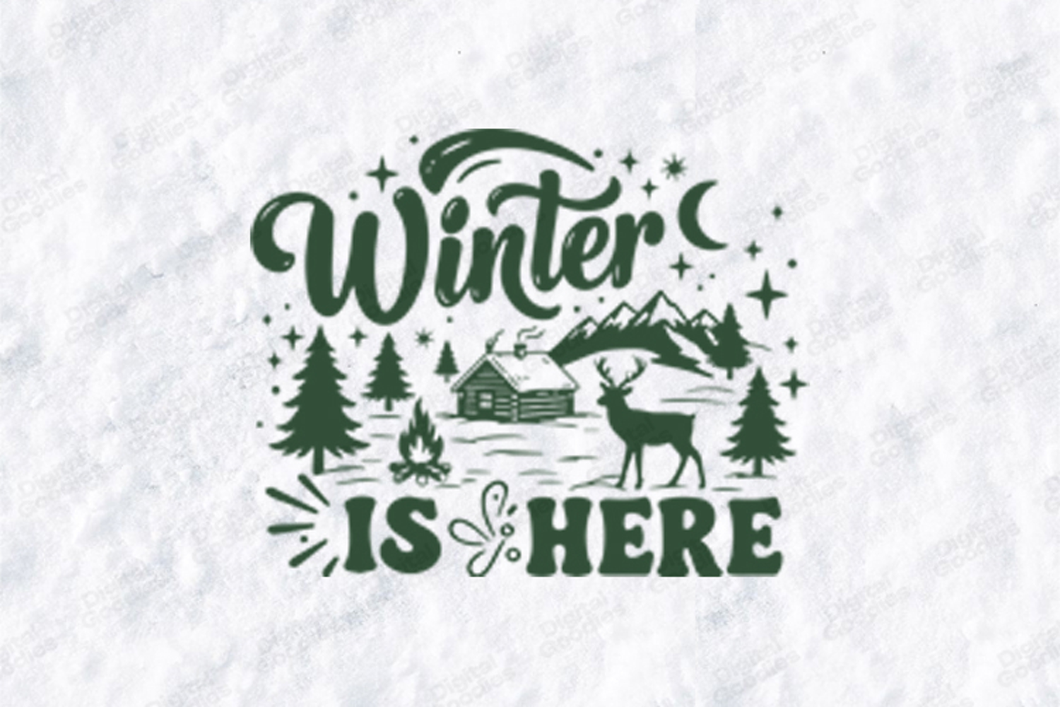 Winter Is Here SVG Christmas Mountain Cabin Deer Cut File