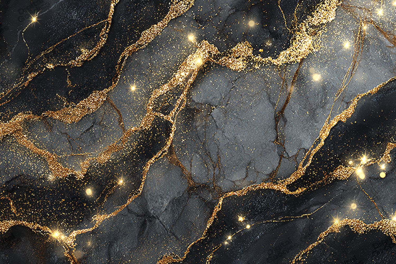 Bring a touch of celestial opulence to your creative projects with this high-resolution gold and charcoal starry marble background. The composition features a dramatic, multi-layered fluid design of flowing obsidian and deep slate grey waves. Each dark curve is brilliantly defined by thick, shimmering gold metallic veins and a radiant scattering of golden stardust and glowing bokeh highlights. The artwork captures a powerful sense of 3D depth and luxurious movement, mimicking a night sky reflected in polished mineral stone. Perfect for premium branding, high-end event stationery, atmospheric web banners, and glamorous sublimation projects, this multi-dimensional marble texture adds a professional, gallery-quality brilliance to any design.