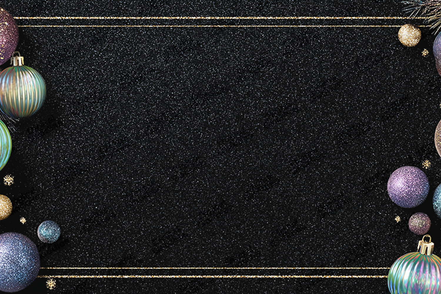 Iridescent Bauble Frame - Black Glitter Holiday Background